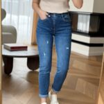 Tiesaus kirpimo džinsai su skeltuku