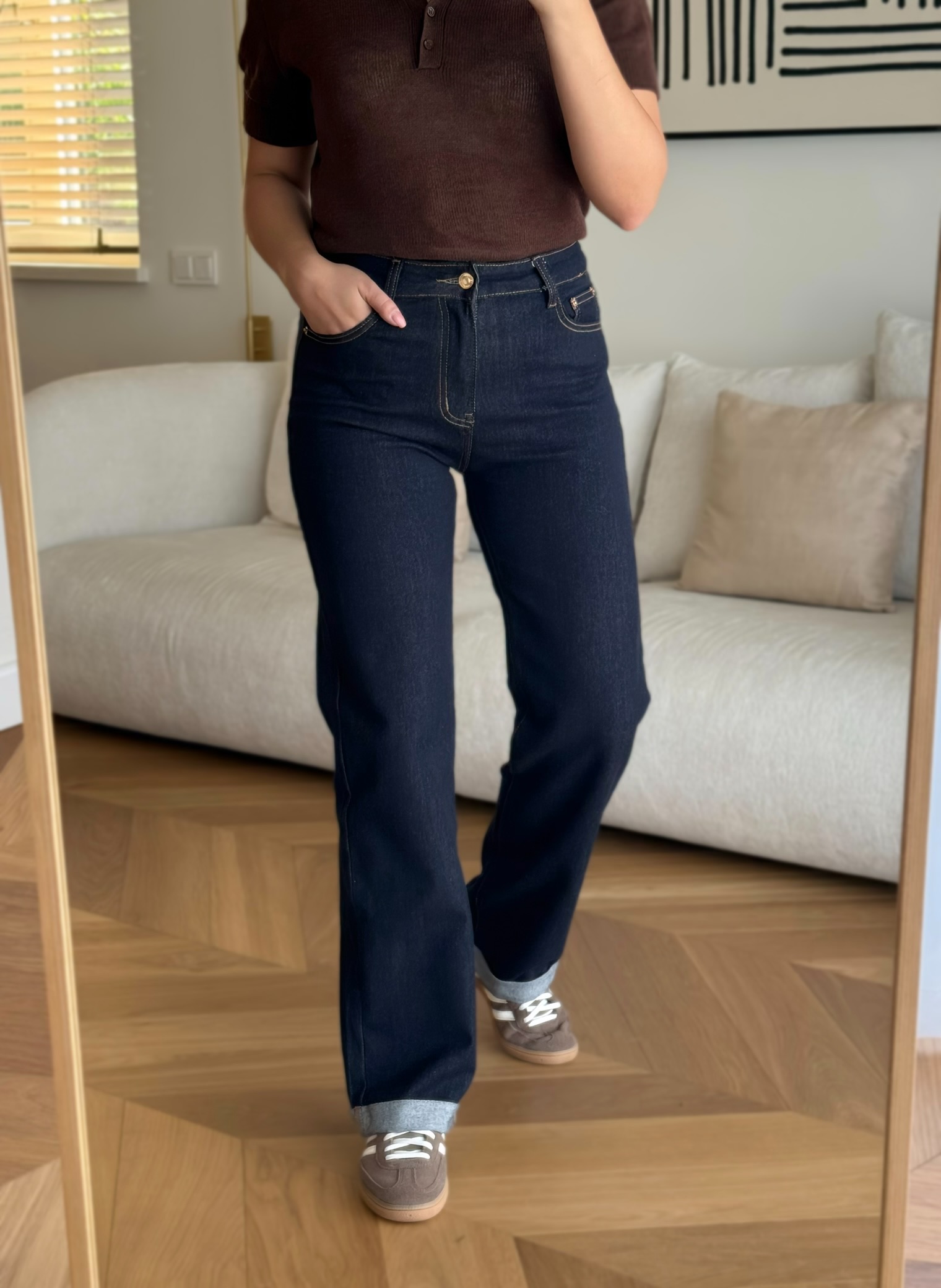 Modelis dėvi: 38/ M dydį.